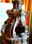 A rare and beautiful piece of French Baroque Art from the 18th century, canopy on an entablemet in a richly carved and polychromed ornamental emicycle, marvelous table architecture and in its condition, the experience having left its mark. A beautiful piece that makes you dream and with high decorative value which is made to magnify a statue; surrounded by these six beautiful columns with round capitals on the circumference of the entablature and rectangular on two sides. The sober black and porphyry red polychomy alternates in cartridges and frames. The majestic canopy is worked like a coffered vault with complications, the side uprights ending in two colossal volûtes. The complicated architecture of the gendarme's hat canopy is remarkable for its moldings and stuccoed decorative elements. This splendid and present "Object of Curiosity" is sufficient in itself and has a high decorative value, transporting us to the middle of the 18th century under the Reign of Louis XV, where it has all the ornaments and majesty... A unique piece of which we will forgive the shortcomings due to experience; because and unusual in the know-how of French Artists, influenced by Italy.....