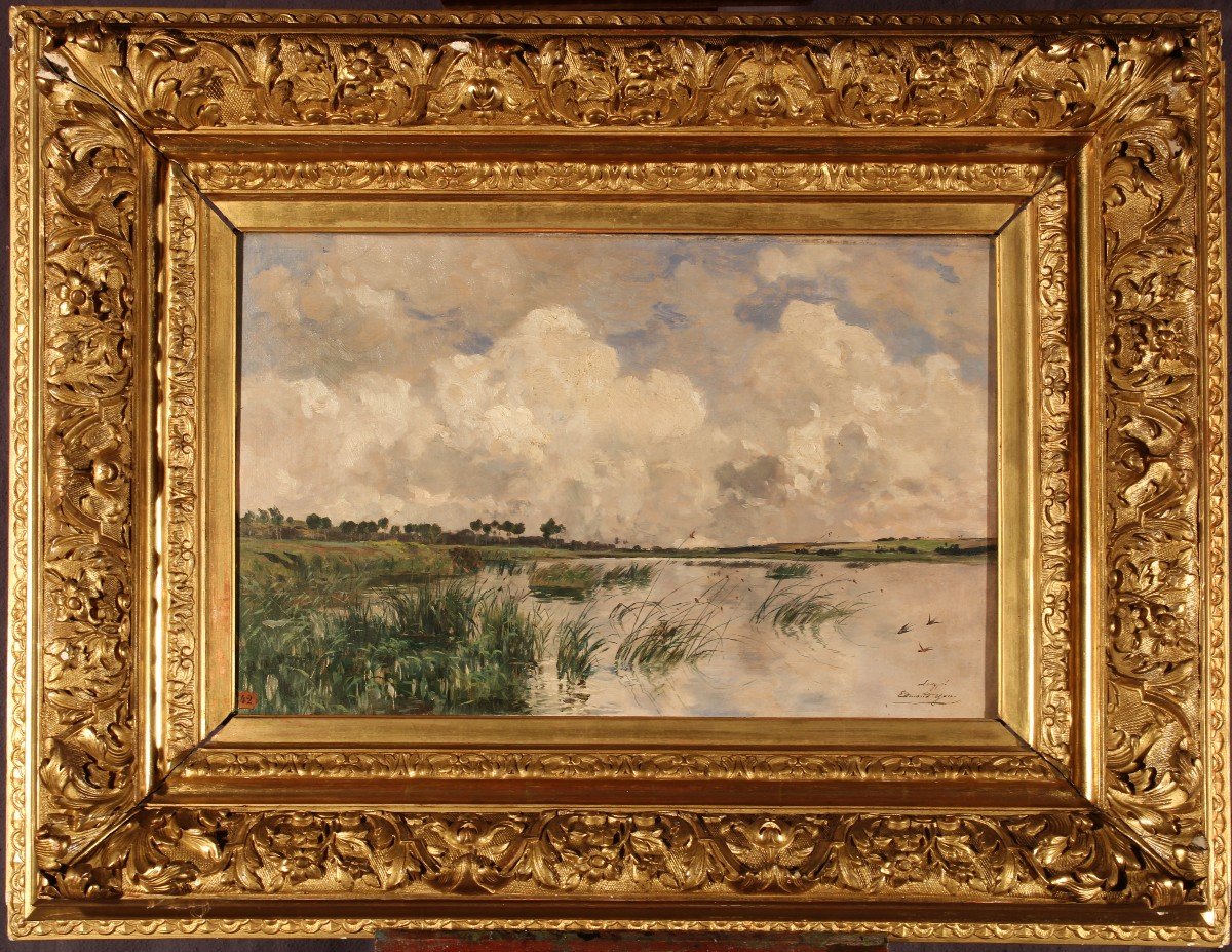 ""at The Edge Of The Pond", Landscape By Edmond Yon (1841-1897), Oil On Canvas, "