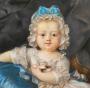 Attributed to Anne-Rosalie FILLEUL, pastel representing the portrait of a young child sitting on a blue silk cushion decorated with gold trimmings and holding in her hand one of her shoes with a pink ribbon. Anne-Rosalie FILLEUL, born Boquet in 1752 in Paris, is a French painter and pastel artist, friend of Élisabeth Vigée-Le Brun. She was a member of the Academy of Saint-Luc in Paris. Most of his portraits, placed in the Garde Meuble, disappeared with the French revolution and today only those of the children of the Countess of Artois remain. Louis XVI period, 18th century Very good general condition despite a little wear in the dress.