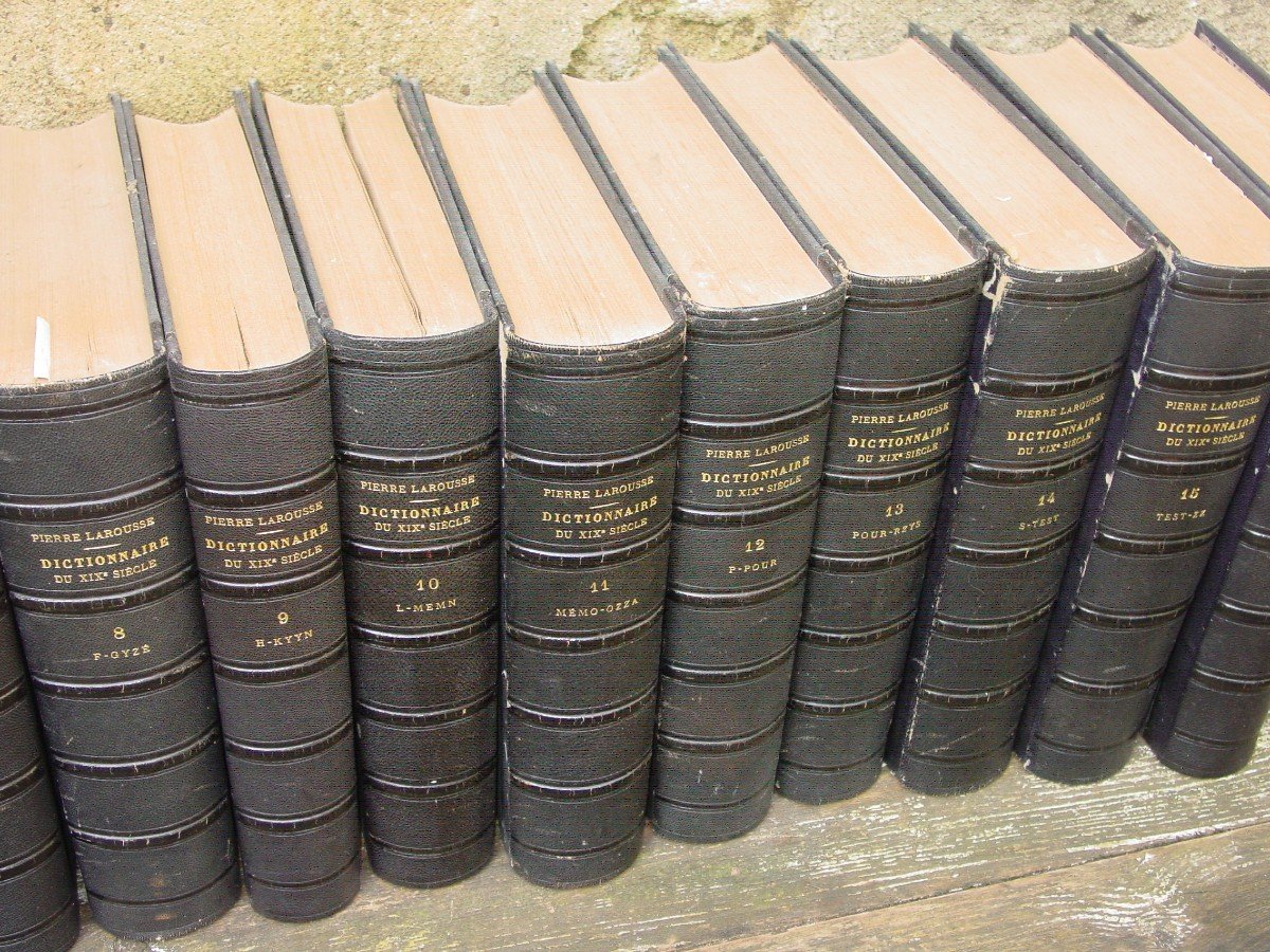 "110cm. From Leather Binding From 1865: Pierre Larousse Universal Dictionary In 15 Vols. + One"