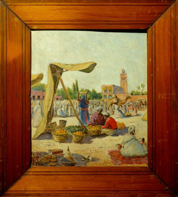 Oil on cardboard as is.......Signed lower left.....29/25 cm......Pitch pine frame 39/35 cm Ch.PARENT (20th century) Painter active in Morocco in the 30s/50s