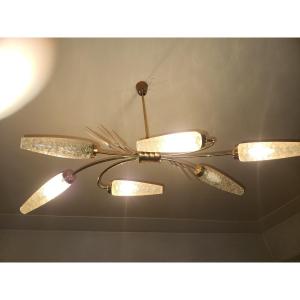 "Arlus Lighting Set From The 60s Consisting Of A Chandelier And 2 Wall Lights"