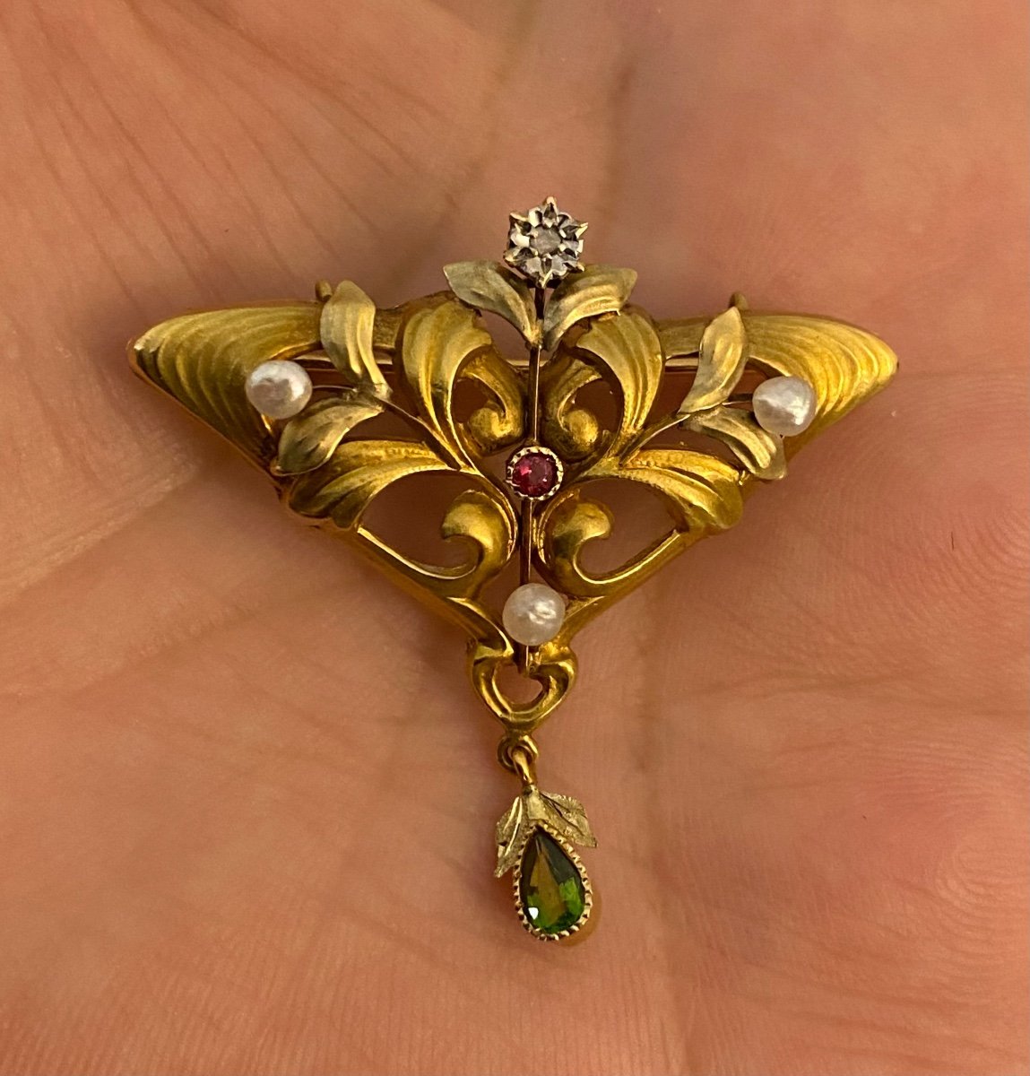 Art Nouveau Style Brooch In 759/1000 Gold