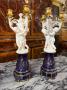 Pair of candelabra in Sèvres biscuit, porcelain and gilded bronze, formed of putti supporting hunting horns forming arms of light on a royal blue base with twisted gadroons Sèvres, 1887,