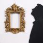 Small carved and gilded frame from the Baroque period, made in the first decades of the 18th century. The frame is carved in lime wood without applied parts; it is decorated with symmetrical leafy scrolls that end in a coat of arms at the bottom and in a shell on the top, on which a winged cupid flies down, bringing a crown to the figure depicted in the portrait, probably a bride metaphorically represented as Venus, according to the typical attributes, shell and Cupid. The similarity with the more famous frame attributed to Parodi, in which the narration of the Judgement of Paris is depicted, is evident: the moulding of the frame is the same as the two putti placed in the shell, in that case placed at the base of the frame, seem very close, a detail that makes us think of a production by a student of the same workshop.
