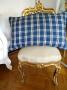 A white cushion is included inside each cover. Borders highlighted by a piping border. Condition: Very beautiful piece, despite 3 small rust spots that testify to its age.