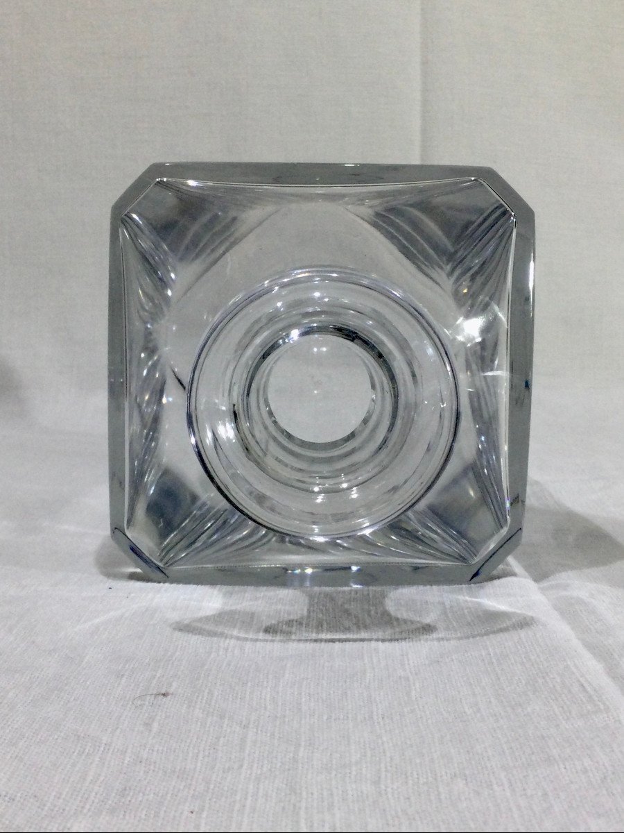 The stopper is square and is beveled on each side. It is engraved 76 below the carafe and the stopper.