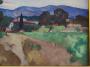 a Superb oil on panel by Paul Charavel representing a village in 1930, signed and dated lower left + located and dated on the back, I think I read Les Mûres, but to be confirmed Size of the painting alone 38x46cm or 48x56cm including frame. This is therefore a magnificent post-impressionist composition with a Fauve tendency by Paul Charavel, worthy of the best painters of his generation Charavel shows us here the extent of his talent, thanks to a precise drawing, a modern layout and touch and finally his typical palette with mauves, blues, greens, oranges, grays etc .... Paul Frédéric Antoine Charavel, born in Marseille on April 2, 1877 and died in Vésinet on May 16, 19611, is a French painter. He notably painted many landscapes of the surroundings of Saint-Tropez and produced religious frescoes mainly in the Aisne. He is particularly distinguished by his bathing scenes and pays a permanent tribute to light. Biography Paul Charavel was a student at the École des Beaux-Arts in Bordeaux in 1896 before becoming a student of Léon Bonnat and Albert Maignan at the École nationale supérieure des Beaux-Arts in Paris. After a stay in Spain in 1903 where the photographs he took in Ávila would remain cited as remarkable, he settled in the "Oustalet des pescadous", a property near Saint-Tropez (it would later become the property of Henri Manguin) where he rubbed shoulders with Paul Signac, Henri Matisse and Albert Marquet. After the First World War, Paul Charavel settled for a few years in Saint-Quentin, carrying out, in the wake of the work of his brother Jean Charavel (1881-1957), architect of the reconstruction, murals and stained glass windows for churches in the department, the two brothers thus contributing together, by the one and only reconstruction of completely razed villages, to shaping models of new places to live, modern and lively. The Academic Society of Saint-Quentin mentions a Portrait of Jean Charavel painted by his brother Paul. Paul Charavel became blind in the evening of his life. Most of Paul Charavel's paintings and drawings are part of private collections such as that of the violist Maurice Vieux, friend of Josette Bugard-Charavel. The Museum of Fine Arts in Menton (Ávila), the Museum of Modern and Contemporary Art of Saint-Étienne Métropole, the Fabre Museum in Montpellier, the Augustins Museum in Toulouse (Landscape of the Bay of Saint-Tropez, 114x146cm, 1935), the Museum of Fine Arts in Liège (Still Life with Violin, 65x92cm) hold paintings by the artist. Paul Charavel made many drawings in black pencil, graphite, charcoal, and lithographs. Several studio sales took place, at Drouot in 1967 or in Limoges more recently This painting is in very good condition, a slight scratch at the top but nothing serious I will take care of making it disappear. Delivered in a pretty modern gilded frame Work guaranteed authentic