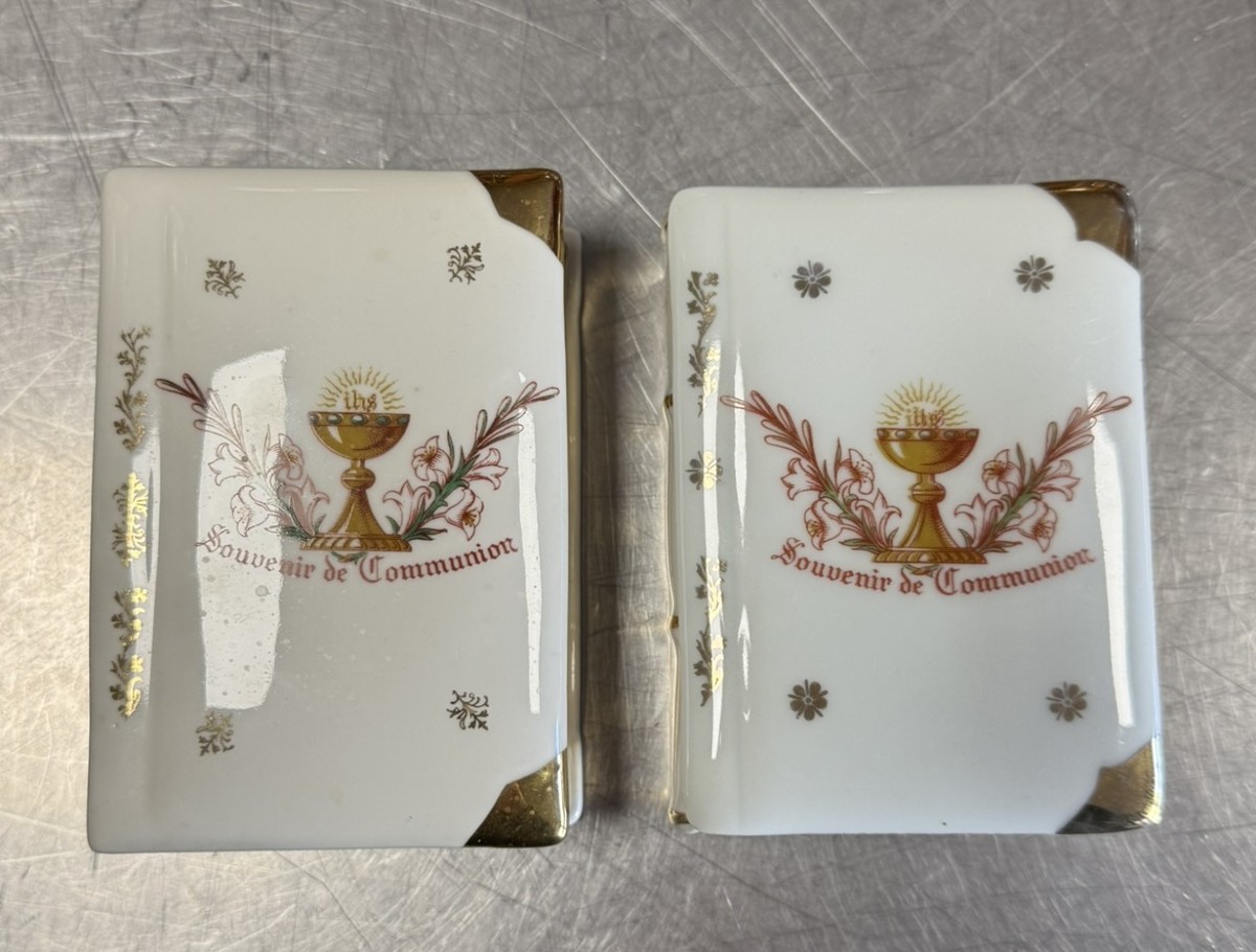 French Porcelain: 2 Communion Souvenir Boxes With Painted And Gilded Decor