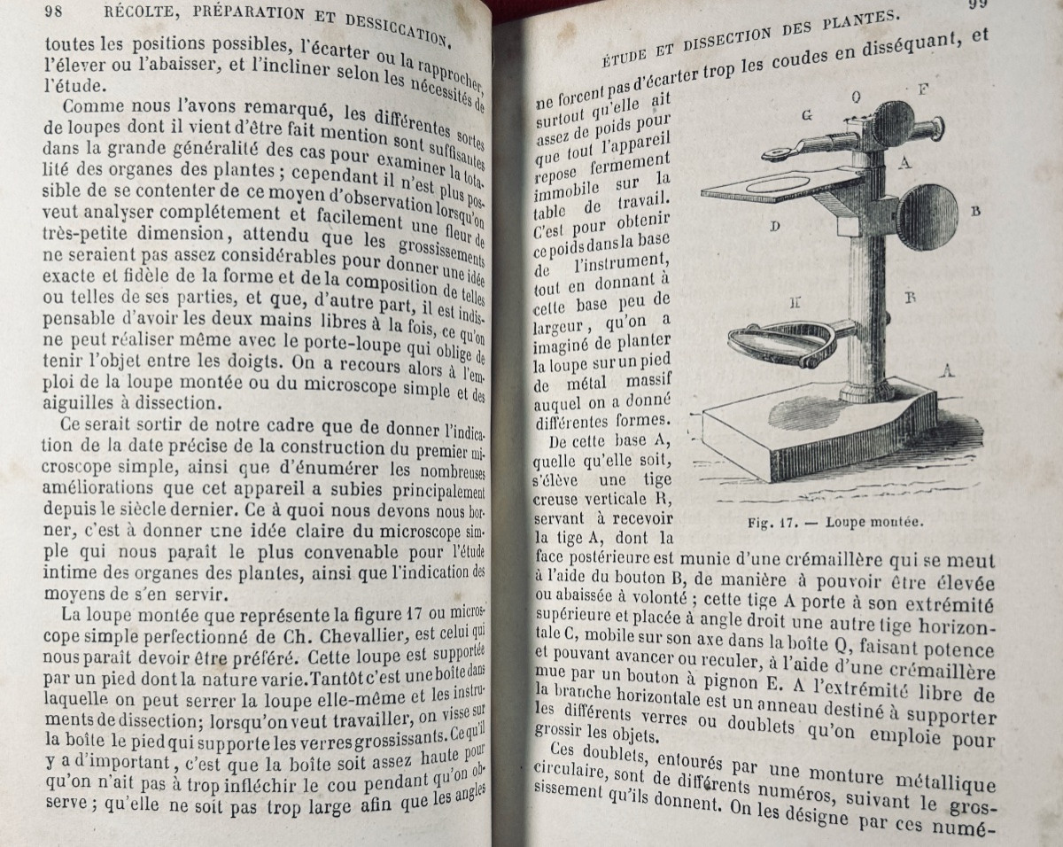 VERLOT (Bernard) - The botanist's guide to botanizing plants. Advice on harvesting plants, preparing herbariums, exploring phanerogram and cryptogram plant stations and their botanizations. With an introduction by M. Naudin. Paris, JB Baillière et Fils, 1865; in-12, XVI-596 pp., bottle green half-shagreen binding, spine decorated with 4 raised bands, marbled edges. Some figures interspersed in the text.
