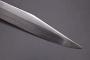 Large steel construction hunting knife with stag horn grip plates held on by steel rivets. One piece steel constructed hilt. Clean bowie style blade with no markings. Leather scabbard with broken belt loop on the backside. Total length in the scabbard is 35cm. The blade length is 22,8cm.
