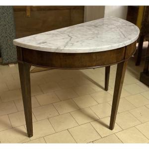 Half-moon console table in walnut, dating from the late 19th century, a refined example of period craftsmanship.