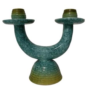 Polychrome Ceramic Candlestick By Rometti Umbertide
