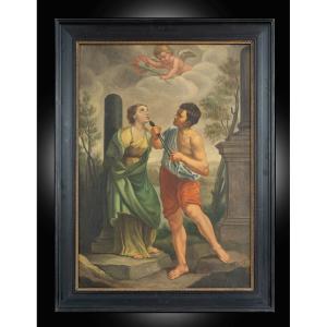Antique oil painting on canvas depicting the Martyrdom of Saint Apollonia. 18th century.