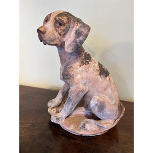 Terracotta Sitting Dog Signed Maurice Leblanc