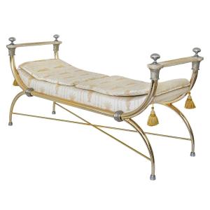 Empire-style Bench In Gilded Brass And Fabric