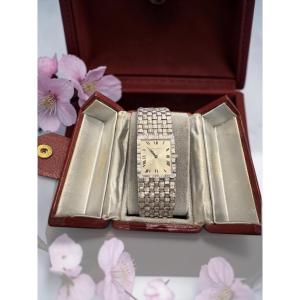 This timepiece is distinguished by its elegant integrated white gold "woven basket" bracelet, adding a touch that is both precious and original. Its harmonious dimensions (25 x 22.5 mm) make it a delicate timepiece, perfectly suited to a feminine wrist.