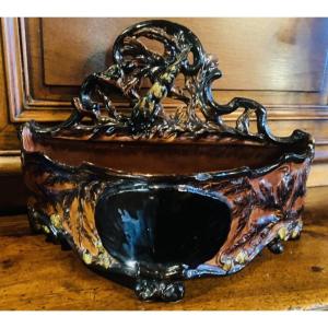 Important polychrome glazed earthenware pocket or mail holder, Art Nouveau period (circa 1890-1900).