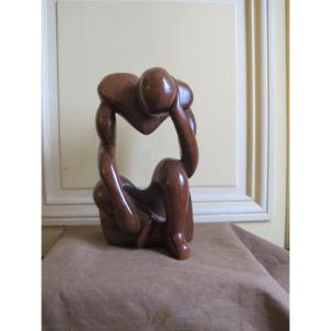 Nice size figure ( Height : 31 cm ) in mahogany carved in the position of the Thinker.