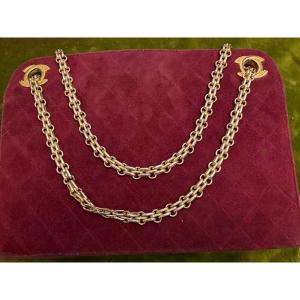 Quilted Skin Handbag, Chanel, Burgundy Color. Gold Shoulder Strap. Very Good Condition.