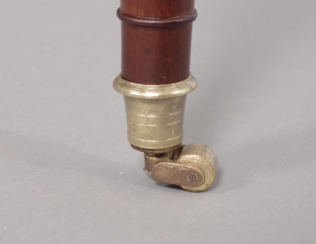 Tric Trac table in mahogany and mahogany veneer. It opens with two opposite drawers and rests on four feet "Jacob" ended by gilt bronze hooves on wheels. Removable tray, sheathed in gold leather on one side and felt on the other. Two boxes are discovered for the game of backgammon, inlaid ivory on a background of ebony veneer.