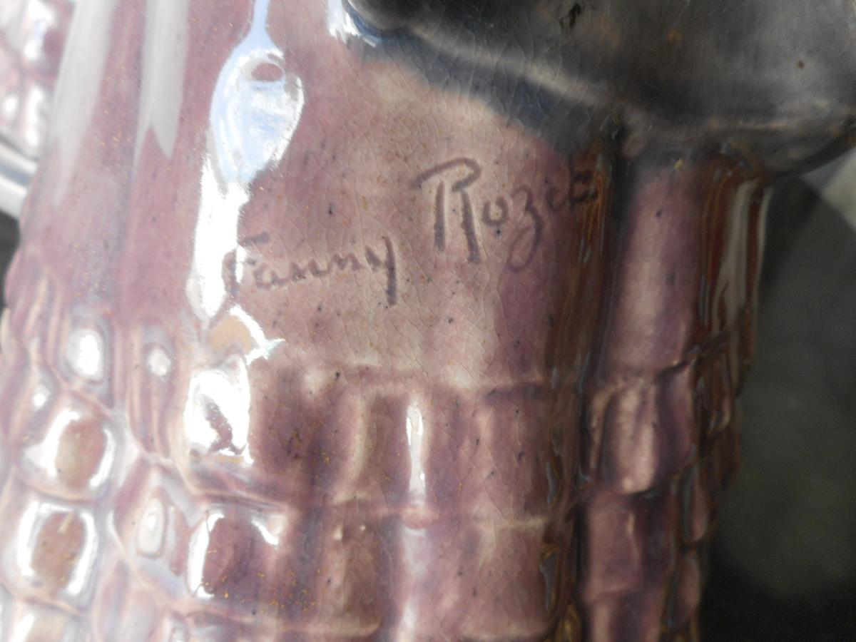 French work, Art Deco period Fanny Rozet 1881-1921 Enamelled ceramic group representing a gentleman with a hat shape and two elegant. Note an enamel jump on the end of the dress (visible on photos) Fanny Rozet was born in Paris on June 13, 1881 Died in Versailles on March 9, 1958. Sculptor. Student at the Ecole des Beaux Arts, and Pupille by Laurent Honoré Marqueste. She exhibited at the Salons of the Society of French Artists in 1904. Received a Mention of Honor the same year, a Bronze Medal in 1921 in the Sculpture section, an honorable mention in 1923, and the Silver Medal in 1926 in Arts applied. Wife of Albert Nicolas Philippe dit Philippe-Bautte (December 14, 1876 - December 26, 1935).