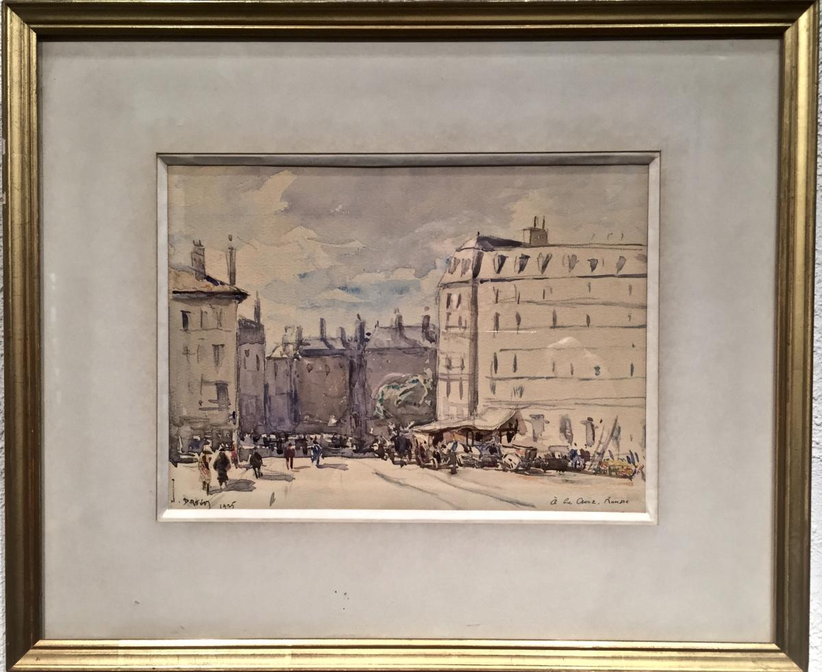 Market and animation view of the Boulevard de la Croix Rousse in Lyon Watercolor signed and dated lower left Place shown on the right Joannès DREVET (1854-1940) Draftsman, engraver and aquarelist Lyonnais Féférences: Bénézit, Akoun, Wikipedia, Internet, Brochures, Museums , ... Dimensions with frame: 35x42 Dimensions without frame: 18x25