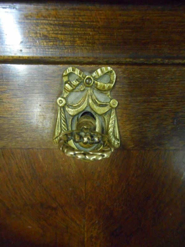 French work, late eighteenth century Small office said "back d'ane" while mahogany from Cuba, abbatant opening on an interior composed of a drawer and lockers. Fluted feet, bronzes of origin, furniture entirely of period having not undergone any restorations, omitted the leather having been changed.