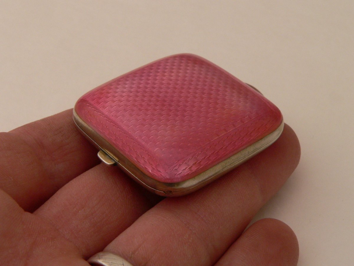 Small cousin shape travel watch in enameled and gilded solid silver. The box is Swiss fabr.ication, the dial is "France made". The hands and the dial with its typography typical of 1900 and beautiful are in perfect condition. I report small accidents on the enamel in two corners but almost invisible. the watch works and keep the time. The bezel measures 35 mm in diameter, the closed cousin 45 mm on the side for 15 mm high.