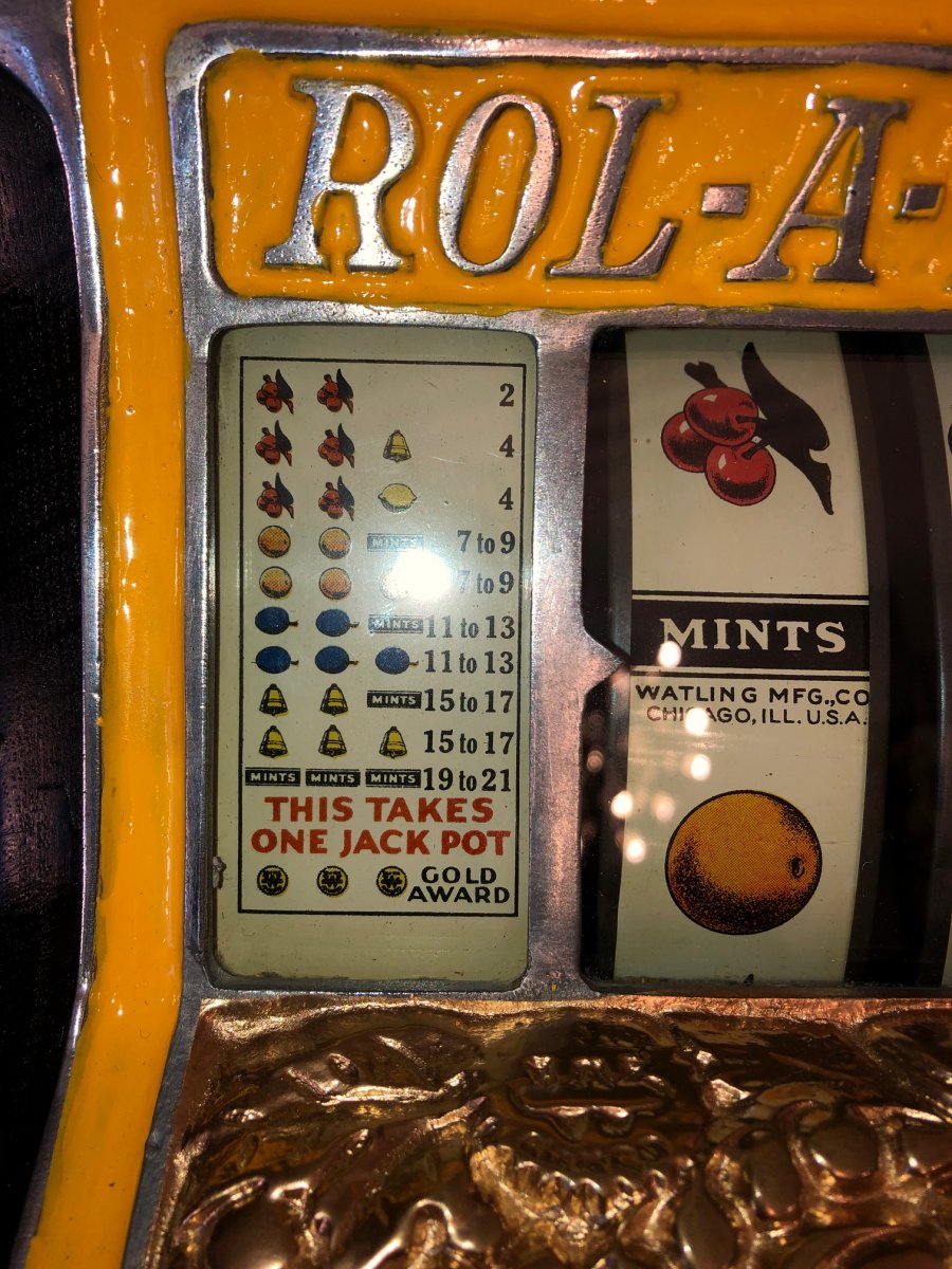 Slot machine ROL A TOP with Golden Awards circa 1936. Very good state of conservation, revised by a professional, varnished case, revised mechanics ..... works perfectly with coins of 20 euro cents. Machine in very good condition as we can see in the photos .... For more information, don't hesitate to contact us on 06 08 92 54 55. Other machines for sale .... The machine is located in our store in Clermont-Ferrand, center France. We permanently buy slot machines in the state or to be restored at a very good price. Roulette, balls, counter games, dice, distributor of all kinds, perfumer, electrifier, chocolates ..... prediction machines and well other coin operated devices. We are also looking for all fairground devices .... Do not hesitate to offer us machines: stephan.heliez@orange.fr or by SMS on 06 08 92 54 55.0