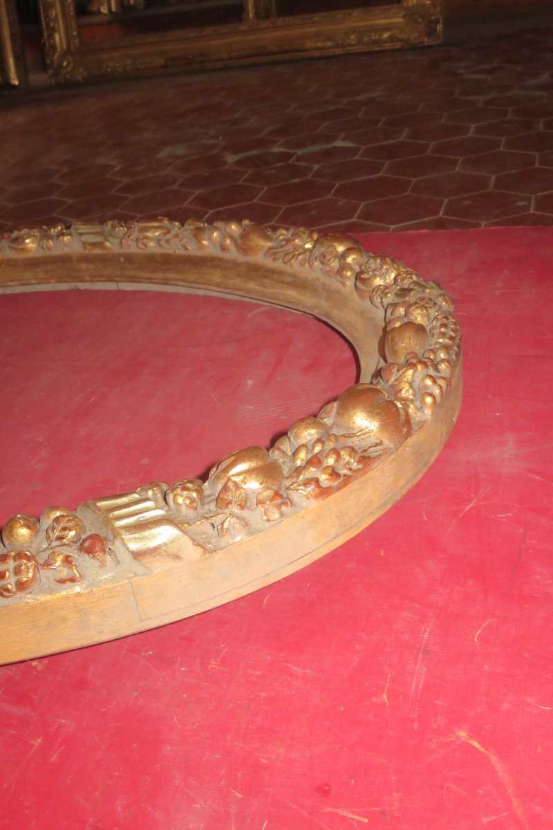 Very beautiful oval frame, Louis XIII style, early 19th century, gilded. External dimensions: 83 x 63.5 cms Internal dimensions: 69 x 50 cms. baguette width: 7 cm. If you wish, we can put a mirror on it.