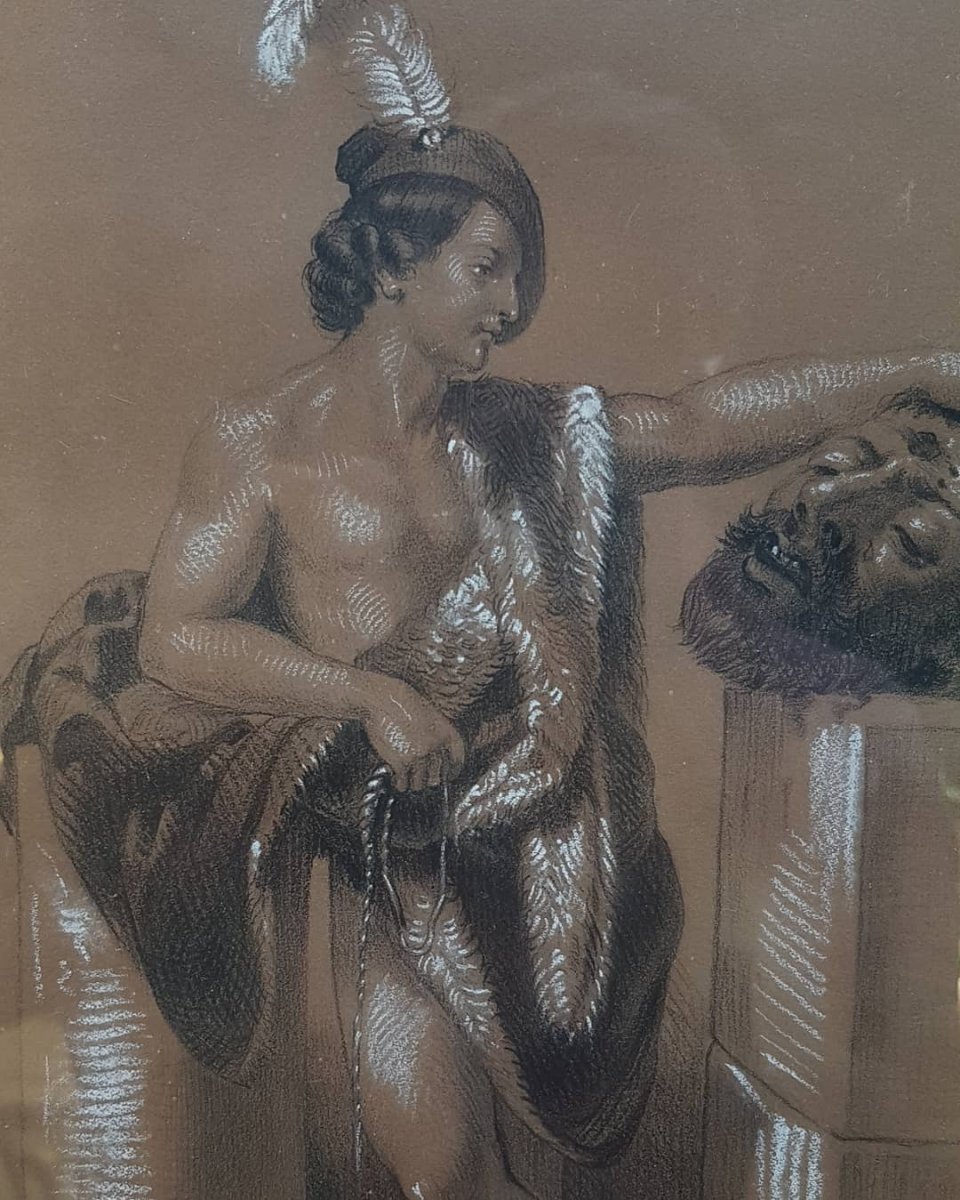 David and Goliath after Guido Reni Pastel and chalk Around 1860 Very good condition. Missing corners of the frame. Goes everywhere with small discreet spots. shipping to France 15 euros