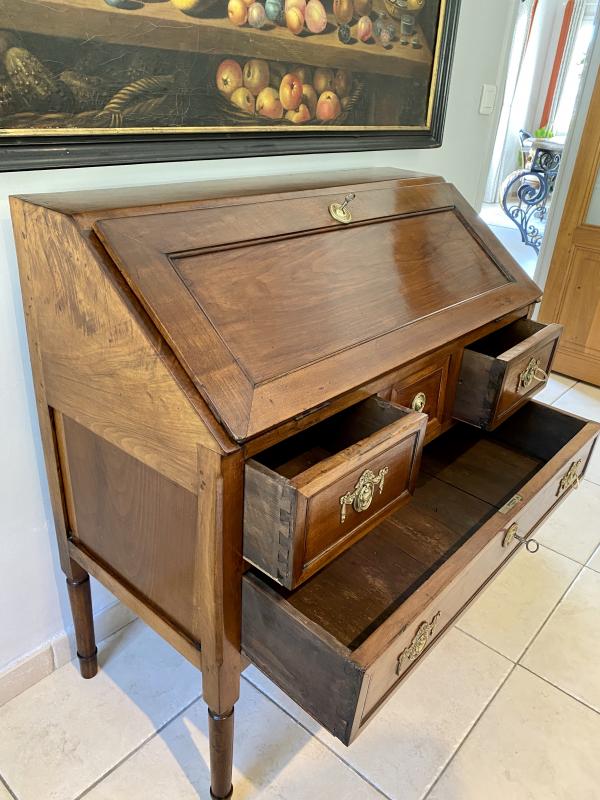 Slope desk in walnut from the end of the 18th century in Provence it opens on the front with two unhooked drawers and the only one in the lower flap revealing four furniture drawers in very good condition revise in our workshop