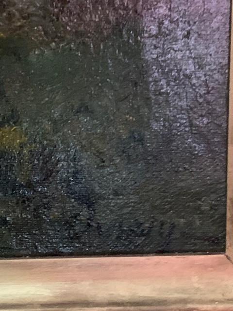 Landscape representing a pond in the vicinity of Barbizon painted on canvas signed Eugène Dupuy born on the name of Eugène Gallien Laloue painter born 1854 in Montmartre in Paris and died in 1941. 19th century frame in golden stucco unframed dimensions Height 62 cm Width 53 cm paulazzopardi.com