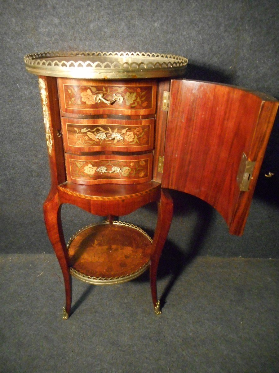 "Small Drum Cabinet Napoleon III In Marquetry And Gilt Bronze"