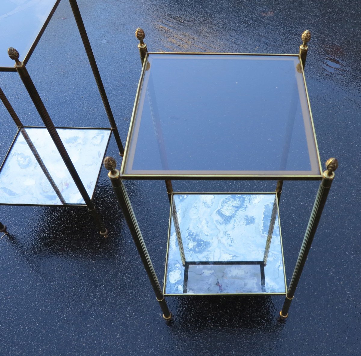 Shelves with bronze uprights with pine cones, 2 trays in smoked glass and oxidized mirror, good condition, Circa 1950/70 Length: 32 cm Width: 32 cm Height: 67 cm