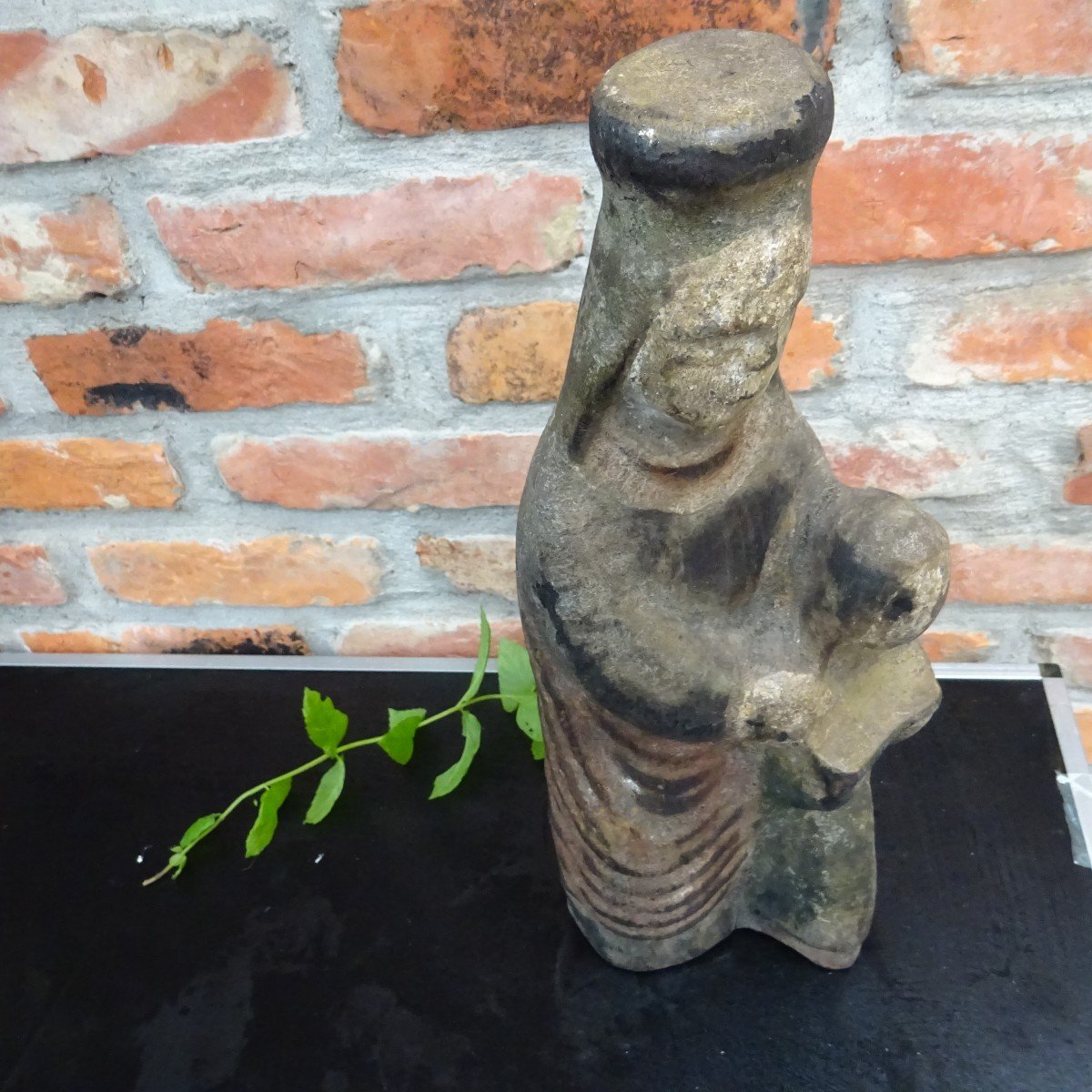 hard to define ... We already know that it is a monoxyl religious statue representing Ste Anne, We can see that it is very old, it has kept the traces of its original polychromy. We can clearly see her wimple which hides her neck, We already know that she spent a long time subject to the vagaries of the weather, of the one who tired her, of the one who soaked her, of the one he offers it to us today with this superb patina. We can see it in a refined decor, which will put it, again for ages, well in value. On the other hand, we do not see if it is a rather Breton work or if its stylistics are related to the canon of the kingdom of Savoy.