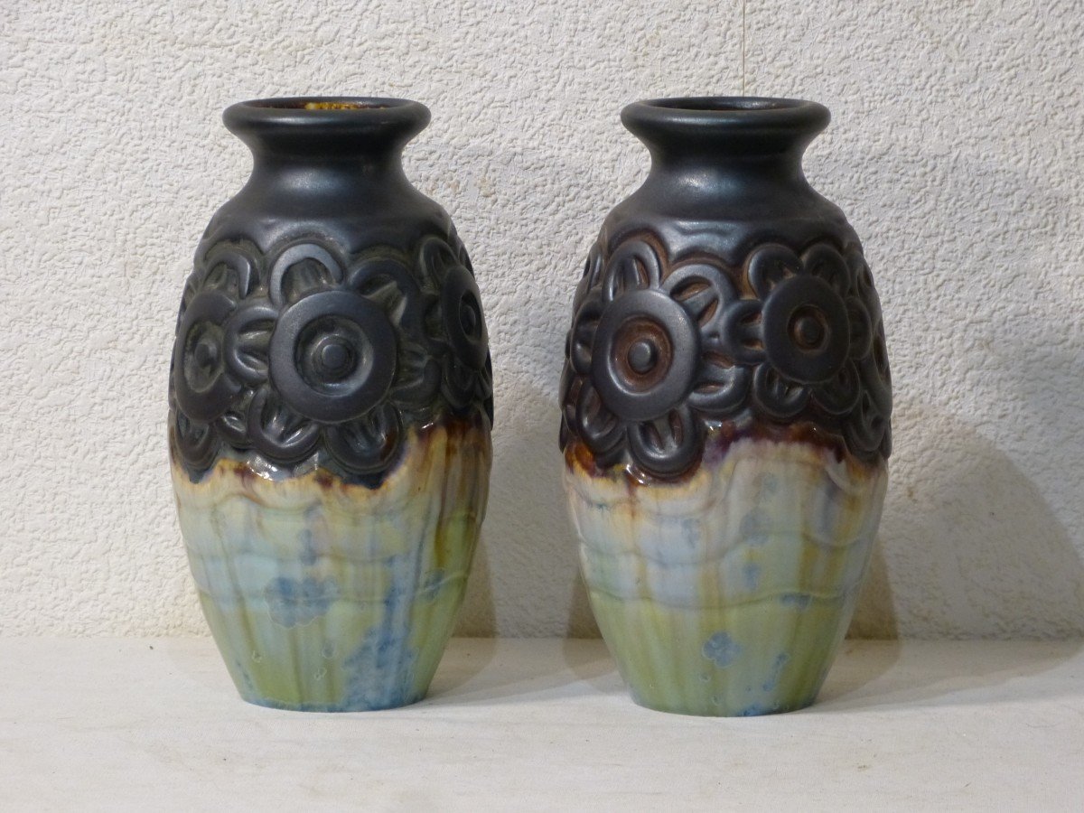 "Grès Mougin Nancy And André Legrand Pair Of Art Deco Dahlia Vases"