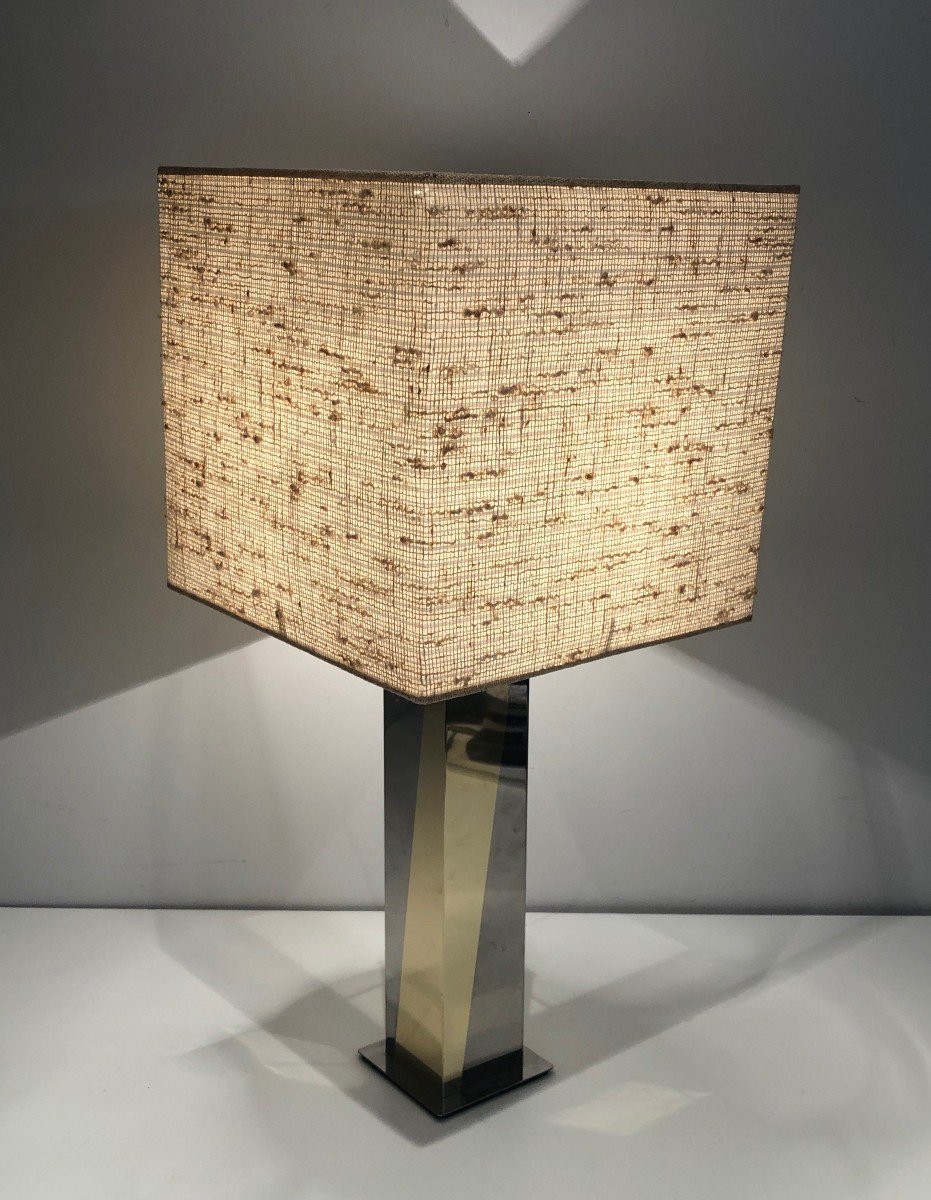 Chrome And Gilt Metal Table Lamp. French Work. Circa 1970