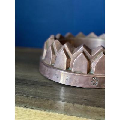 Marque à beurre Bretonne en buis de forme cylindrique en colonne , avec d'un côté une molette sculpté de motifs striés , et de l'autre côté en partie basse d'une rosace ceinte d'une couronne en épis a[...]